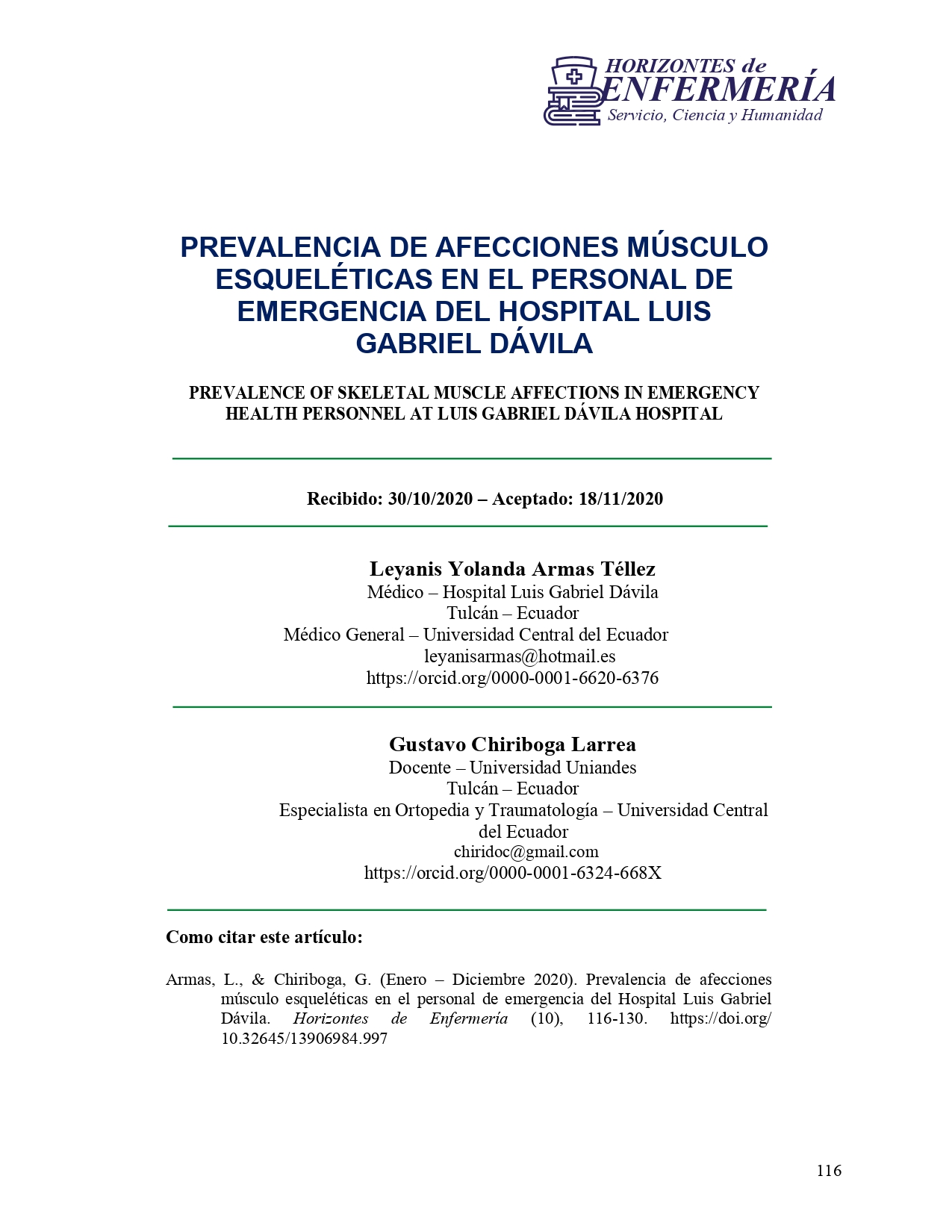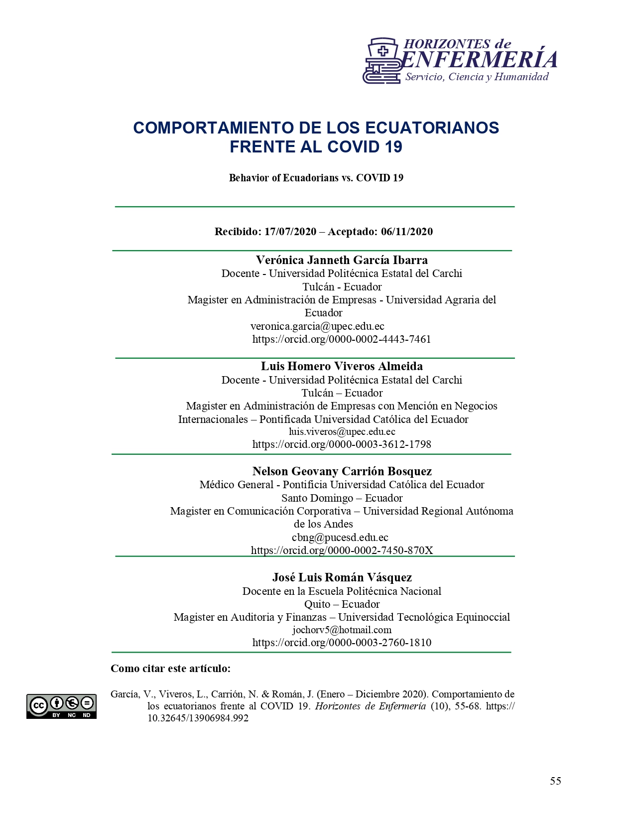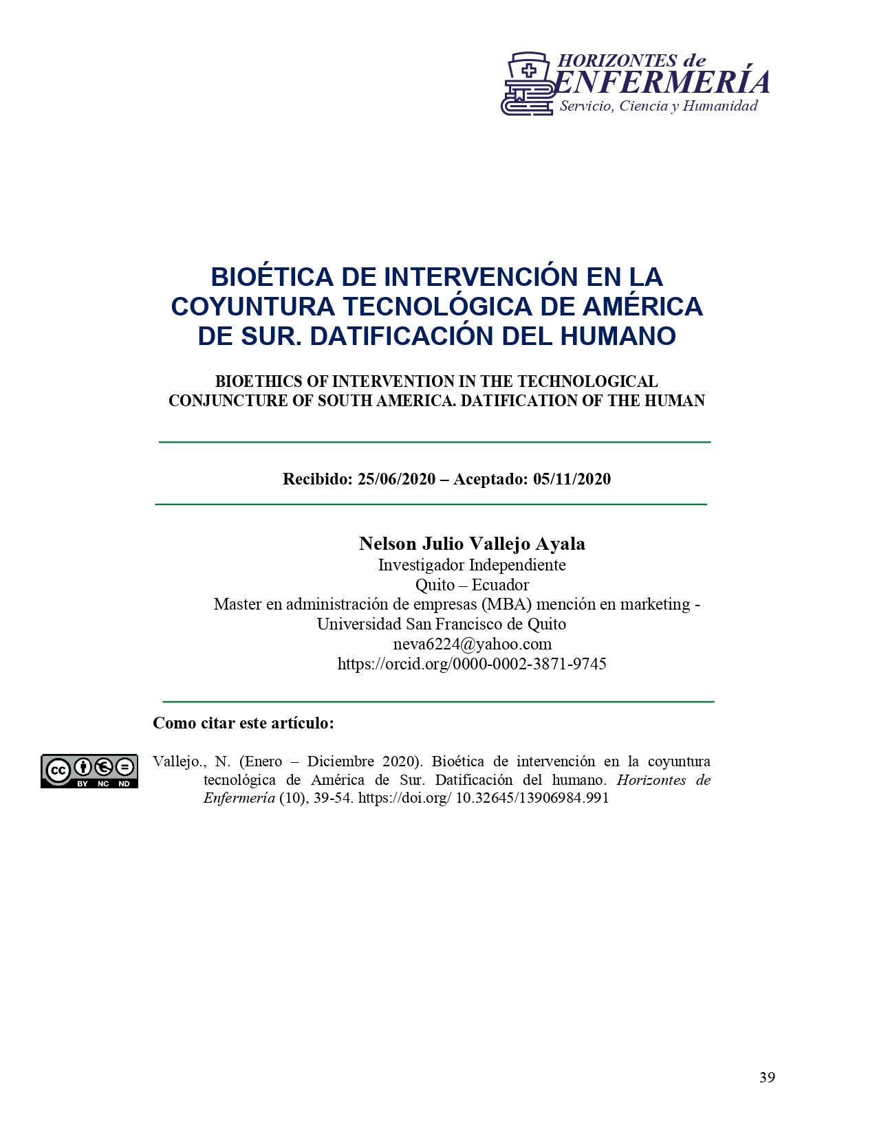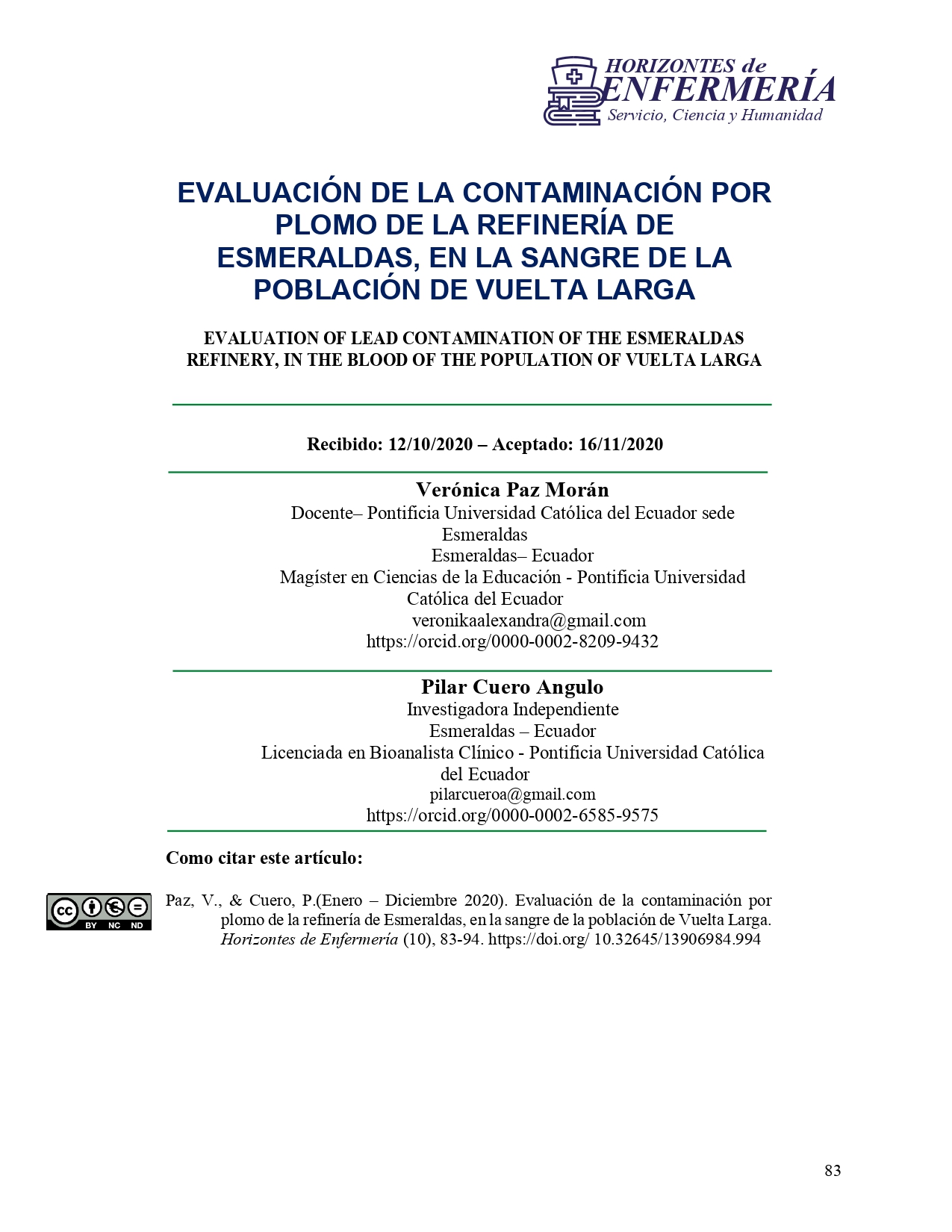 Horizontes de Enfermería publica resultados de investigaciones realizadas por los docentes de la carrera de enfermería, de otras carreras y de profesionales en salud similares, foros, congresos, simposios, seminarios y artículos de vinculación con la colectividad bajo la responsabilidad de sus autores. Los artículos solo pueden ser reproducidos citando la fuente.