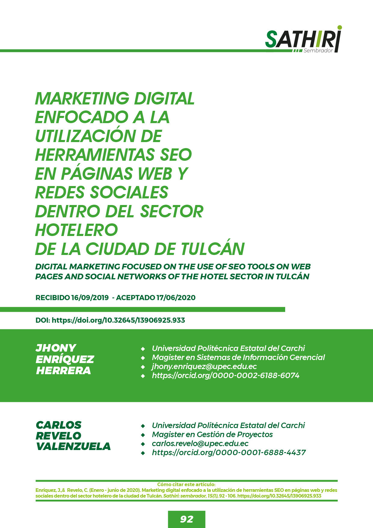 Vol. 15 Núm. 1 (2020): Revista SATHIRI: Sembrador Vol. 15, N° 1 (Enero - Junio)