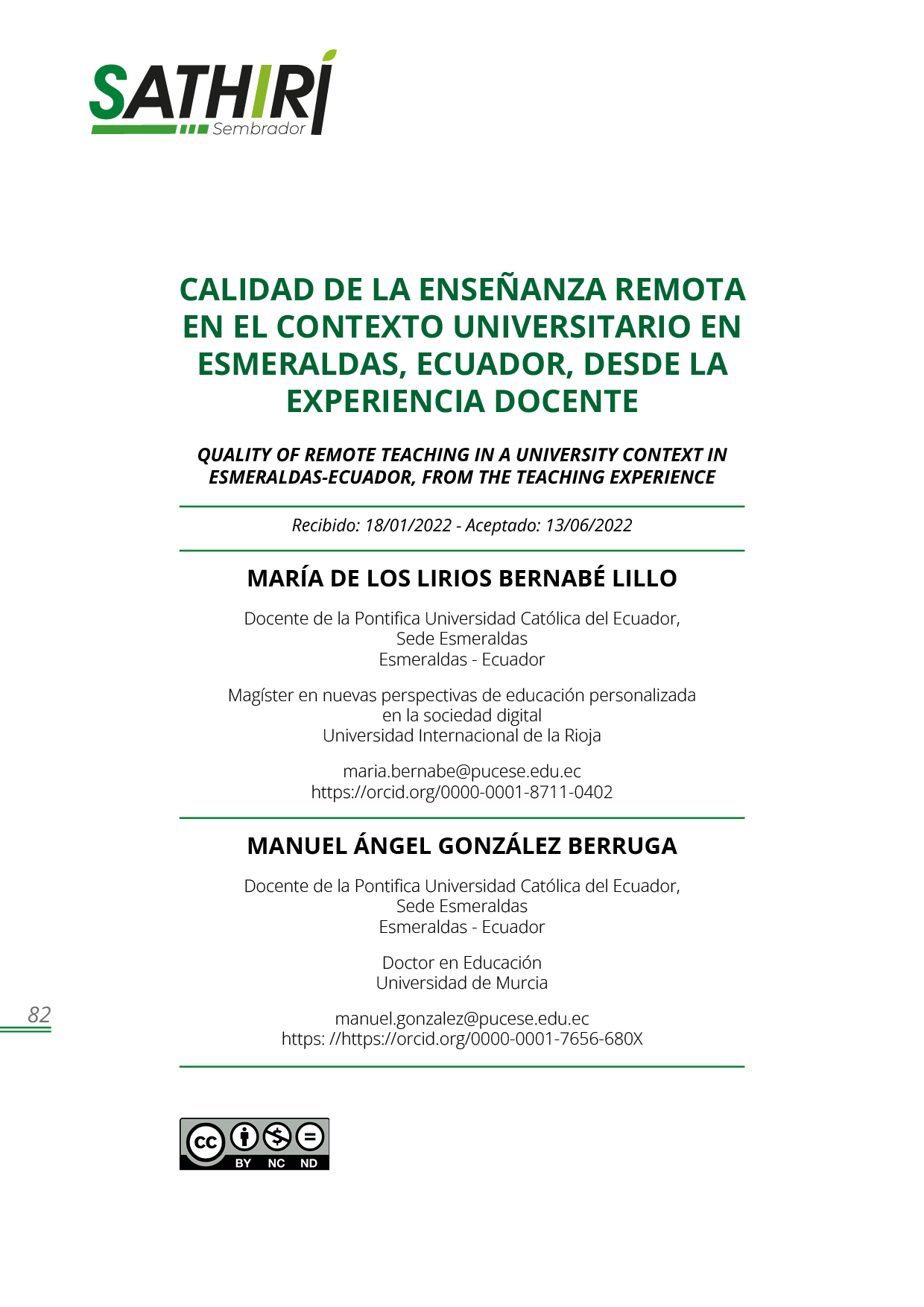 Vol. 17 Núm. 2 (2022): Revista SATHIRI: Sembrador Vol. 17, N° 2 (Julio - diciembre)
