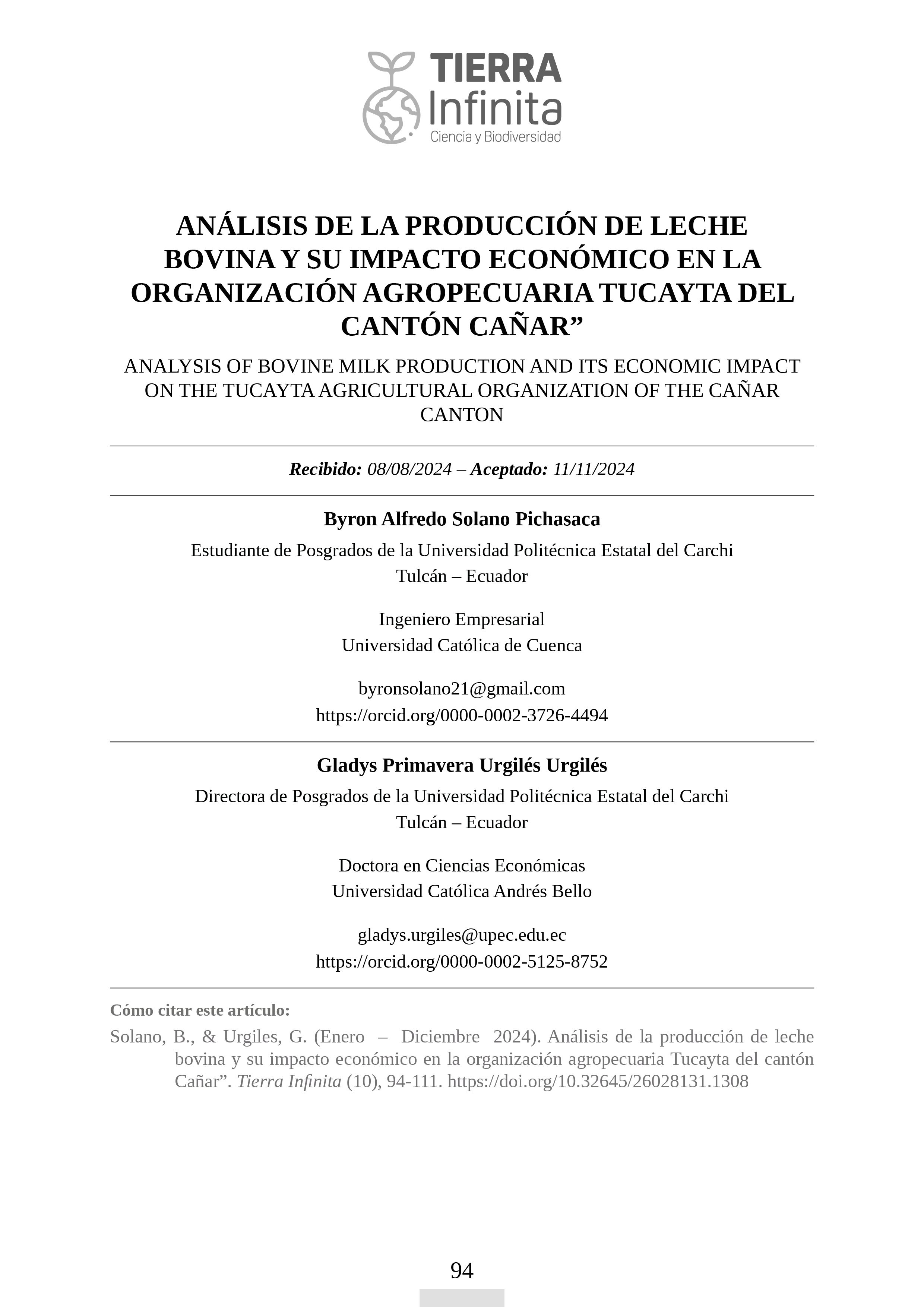 Correo electrónico: tierrainfinita@upec.edu.ec / jairo.guevara@upec.edu.ec