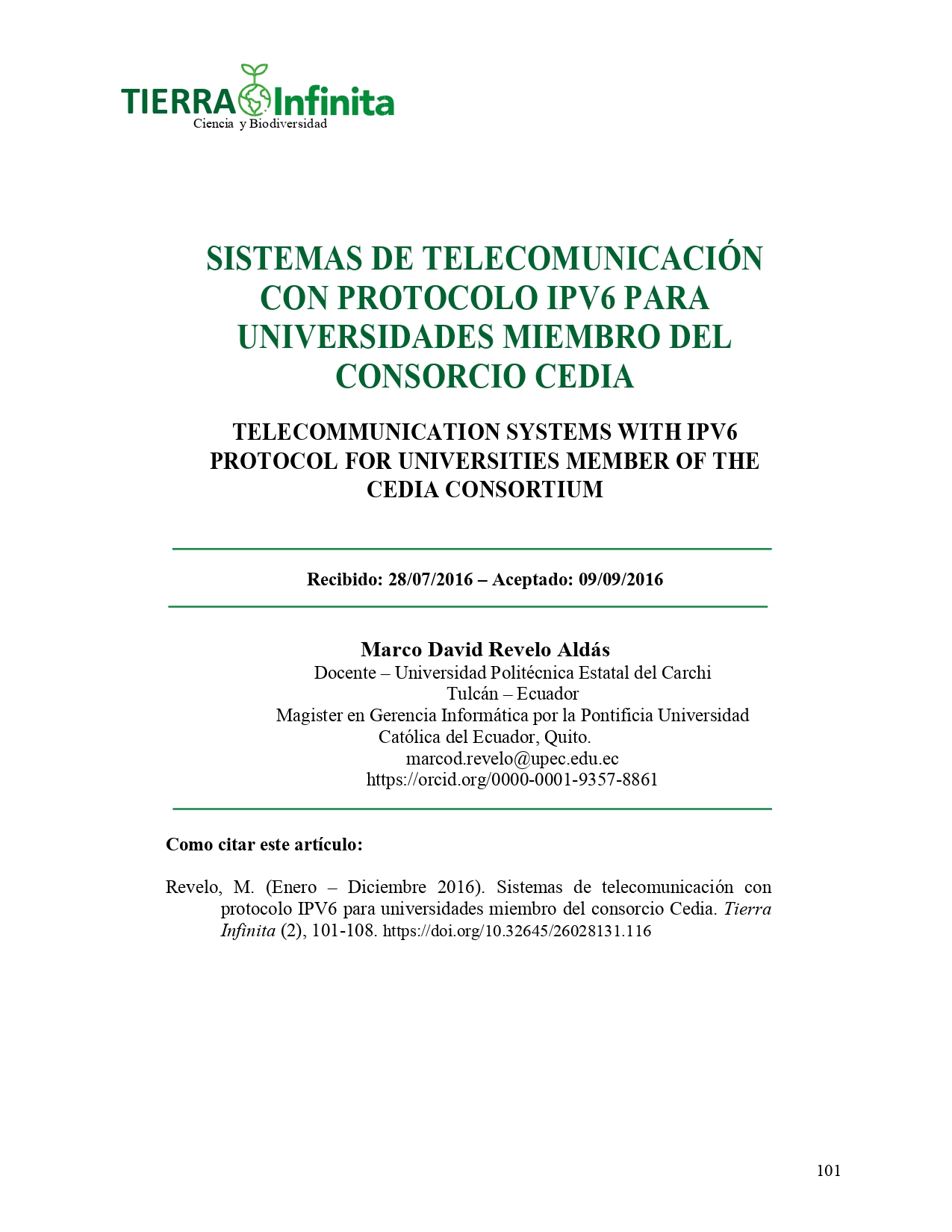 Vol. 2 Núm. 1 (2016): Tierra Infinita