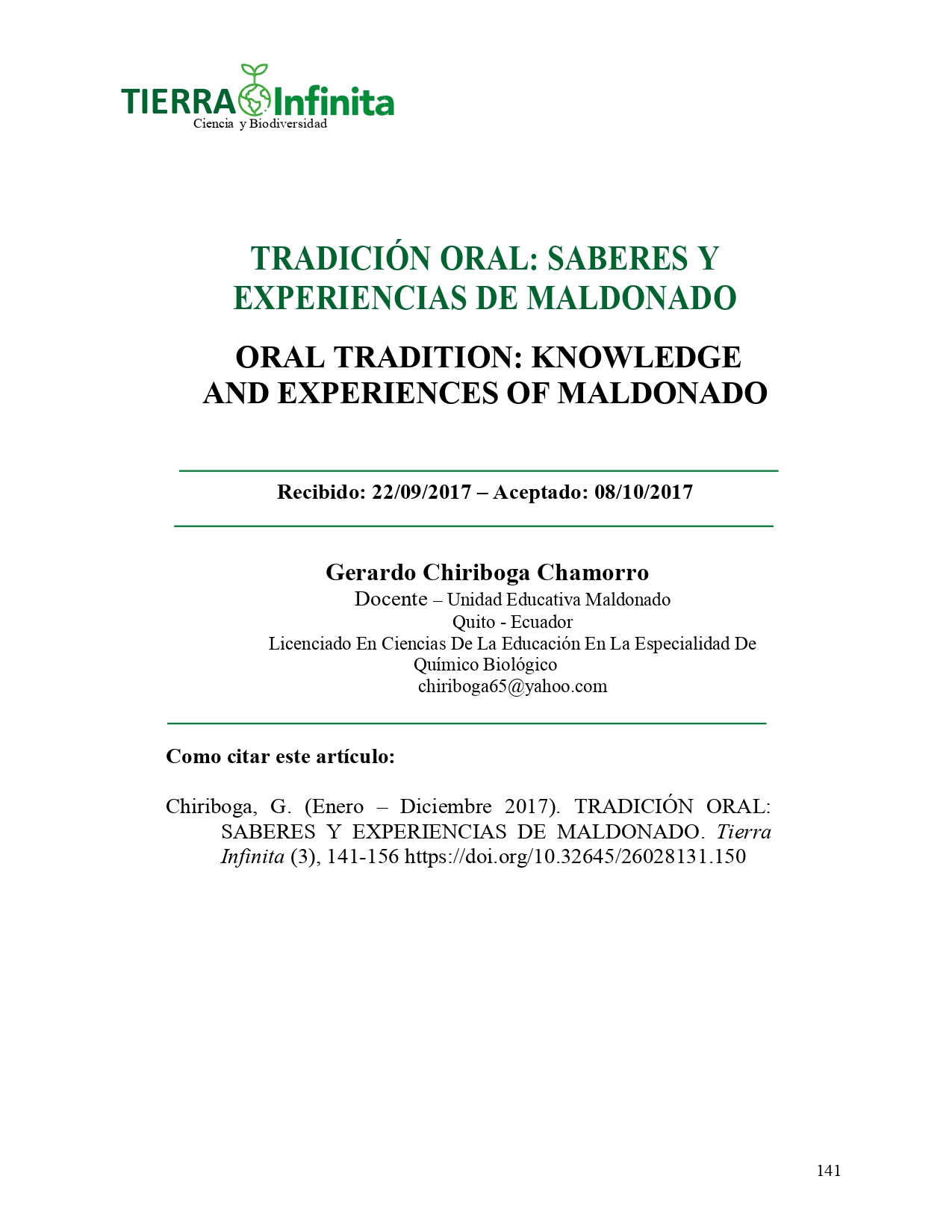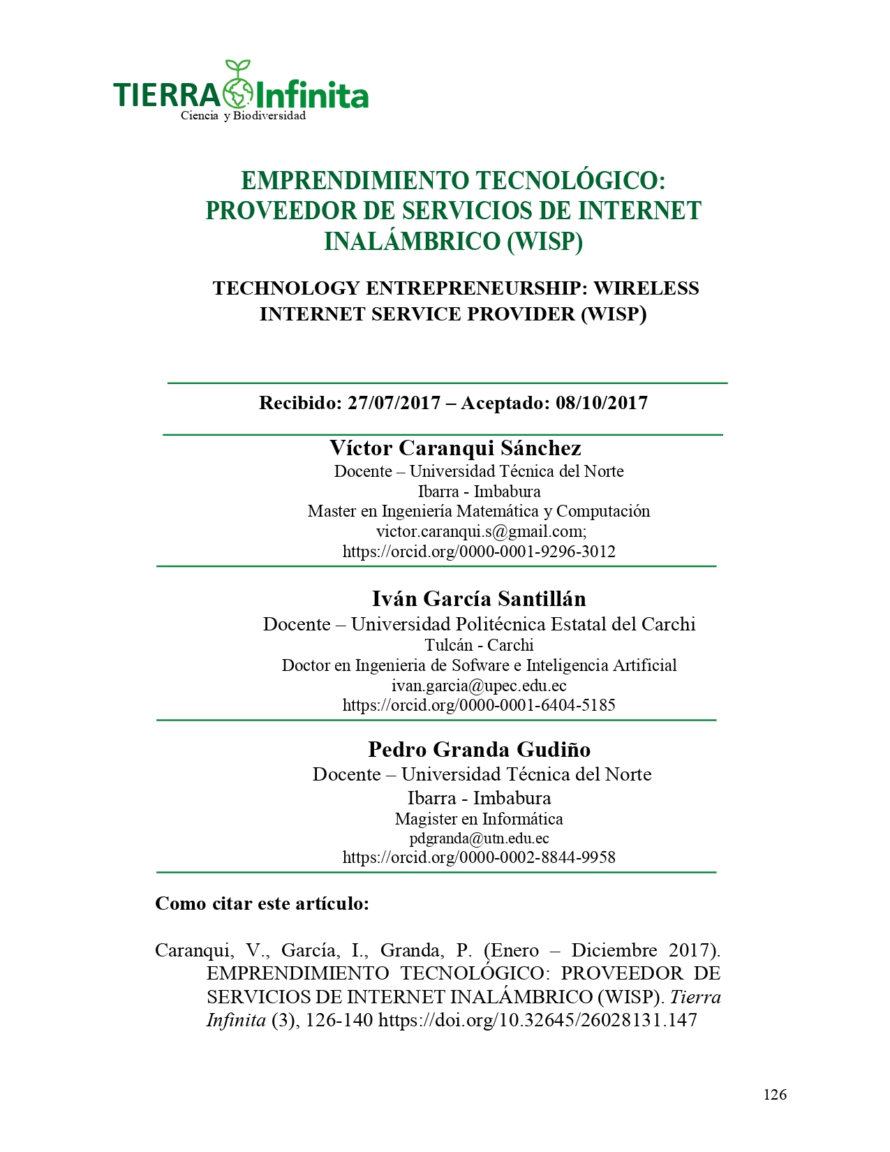 Vol. 3 Núm. 1 (2017): Tierra Infinita