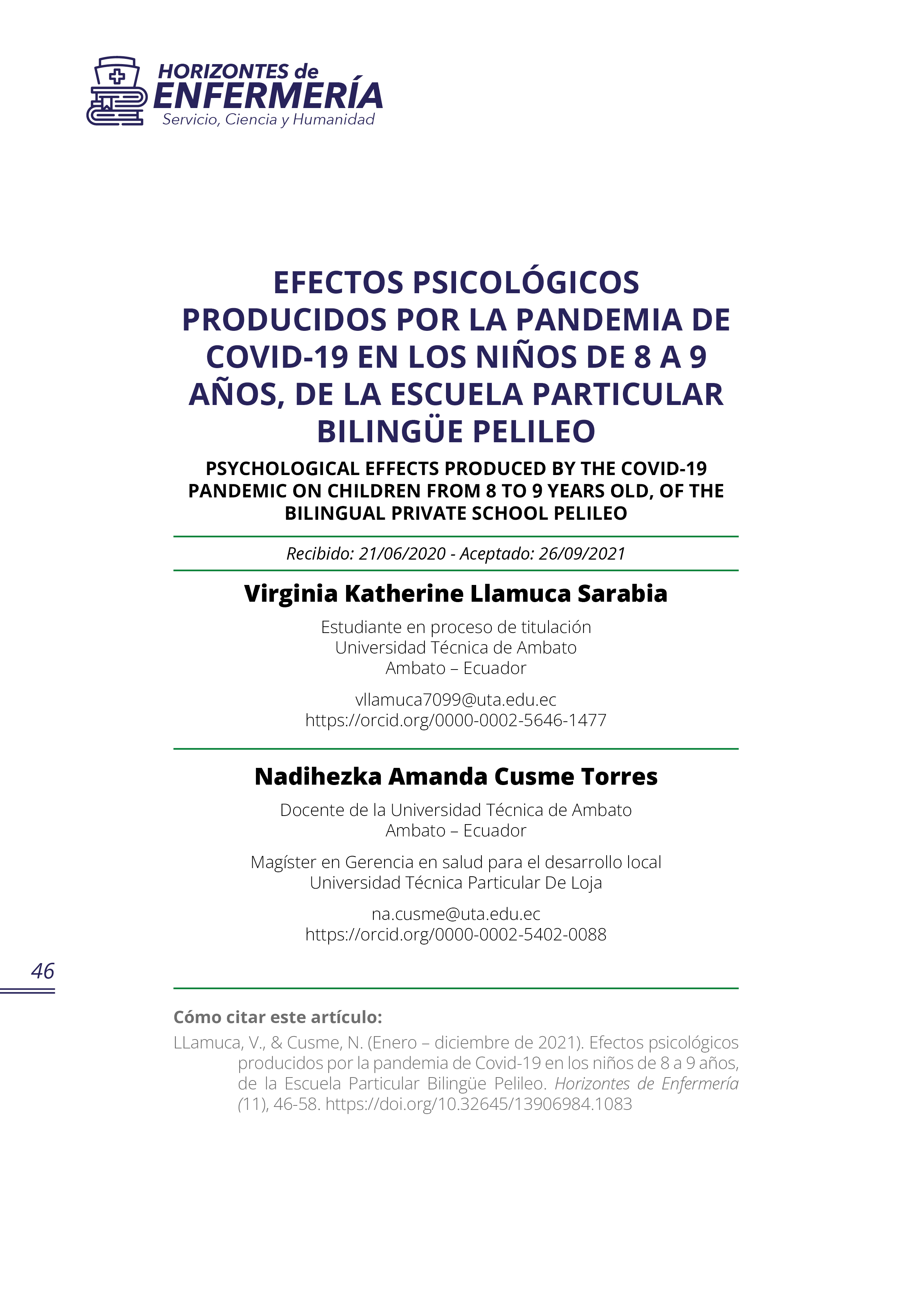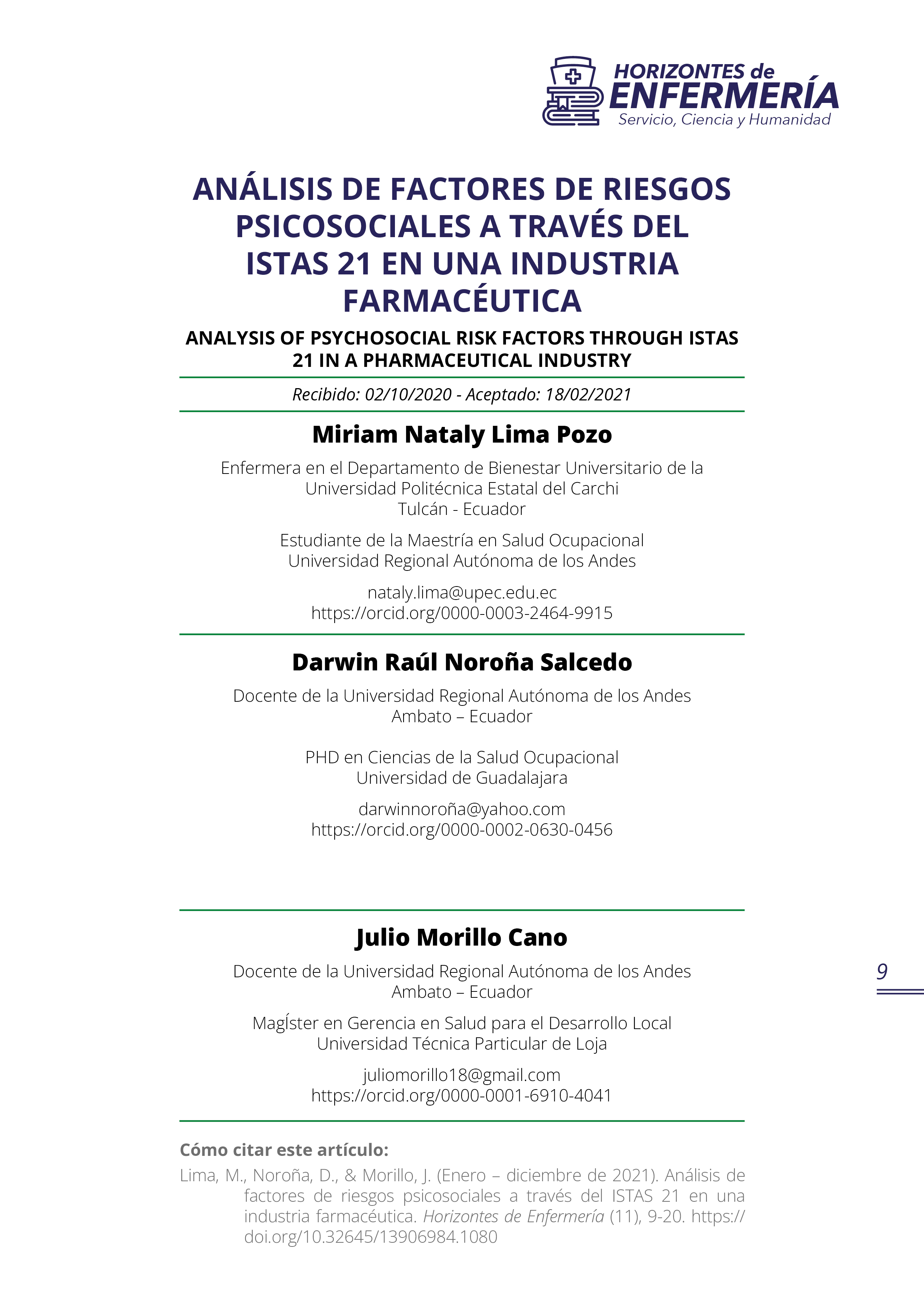No. 11 (2021): Horizontes de Enfermería