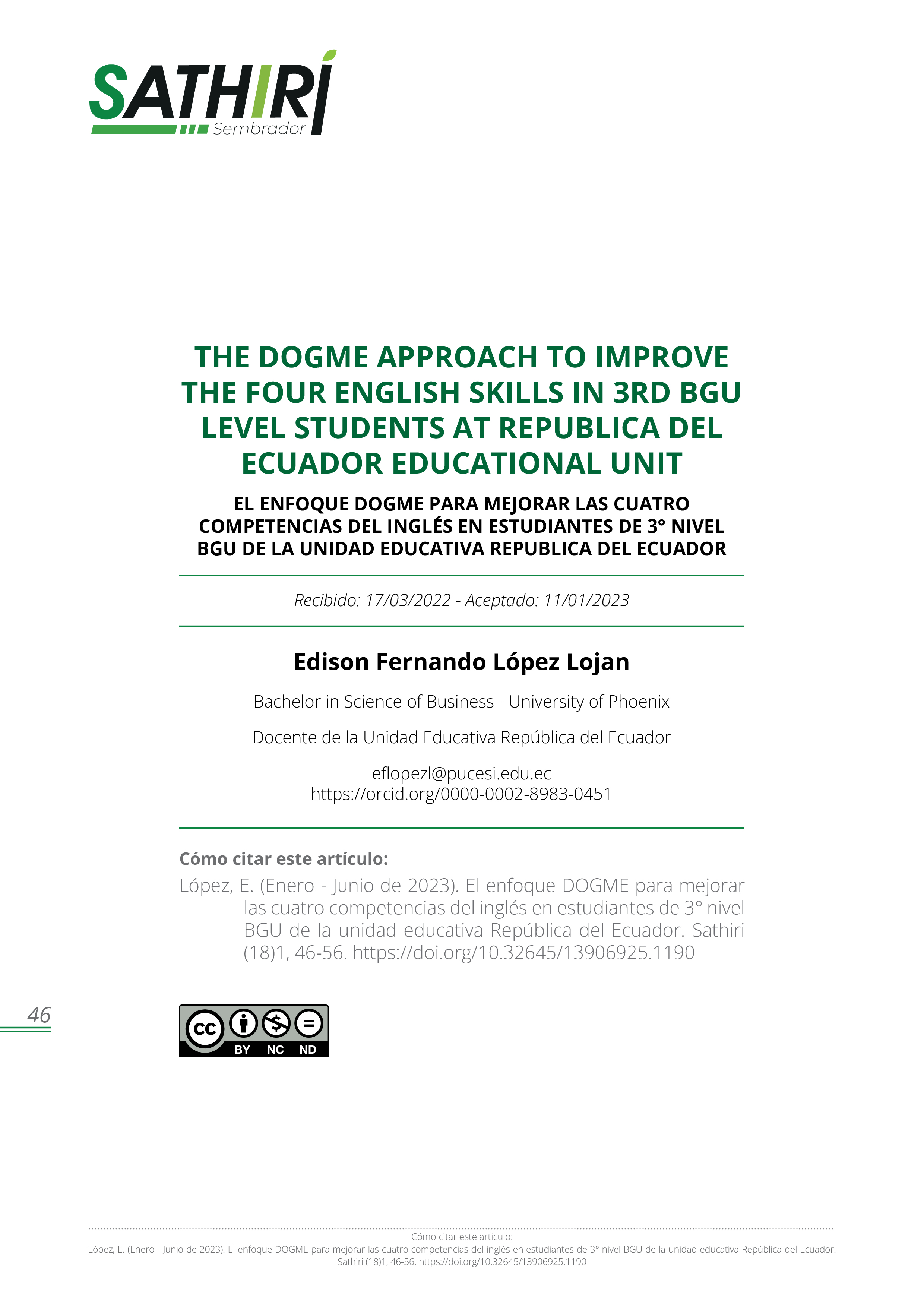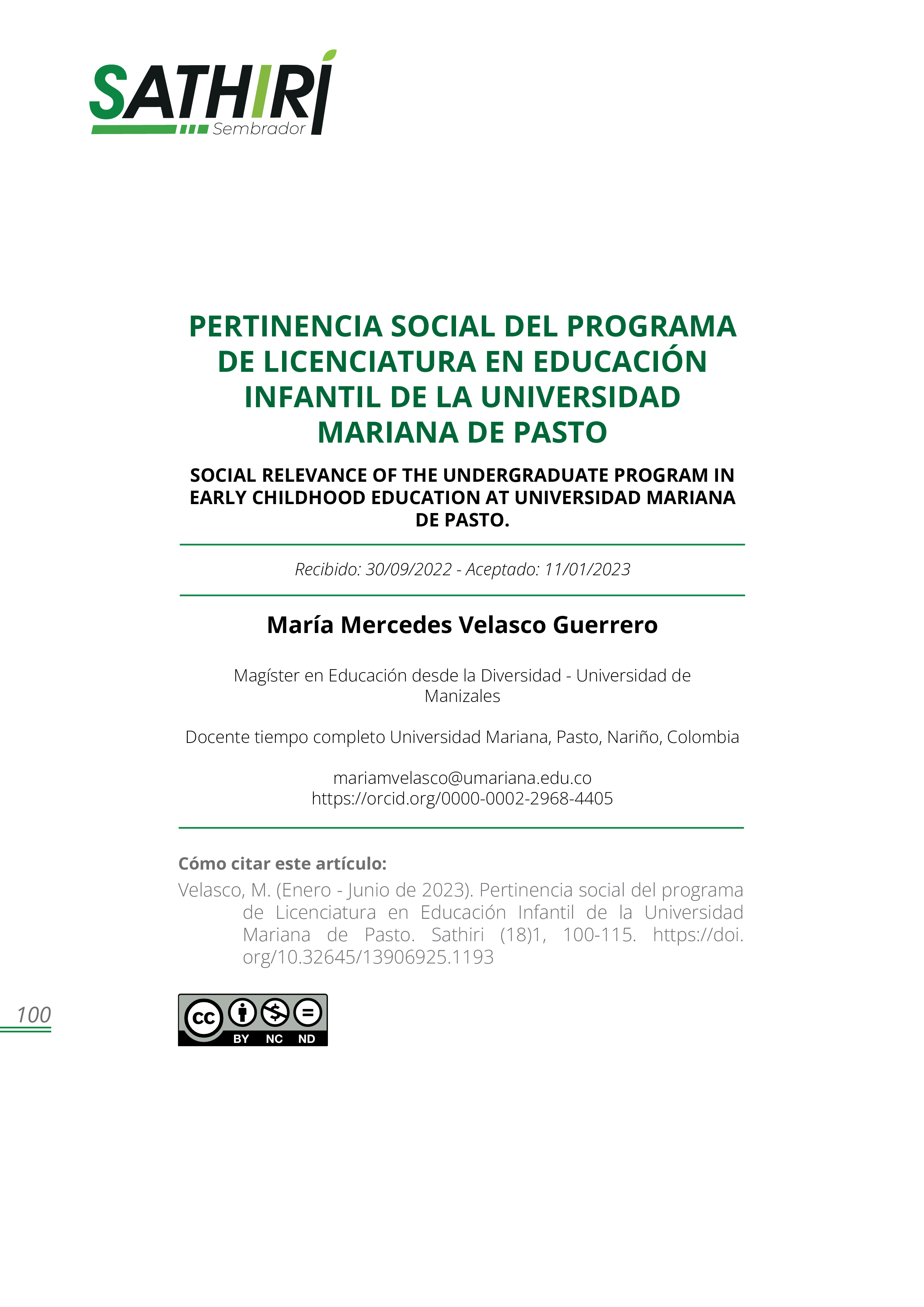 Vol. 18 No. 1 (2023): Revista SATHIRI: Sembrador Vol. 18, N° 1 (Enero - junio)