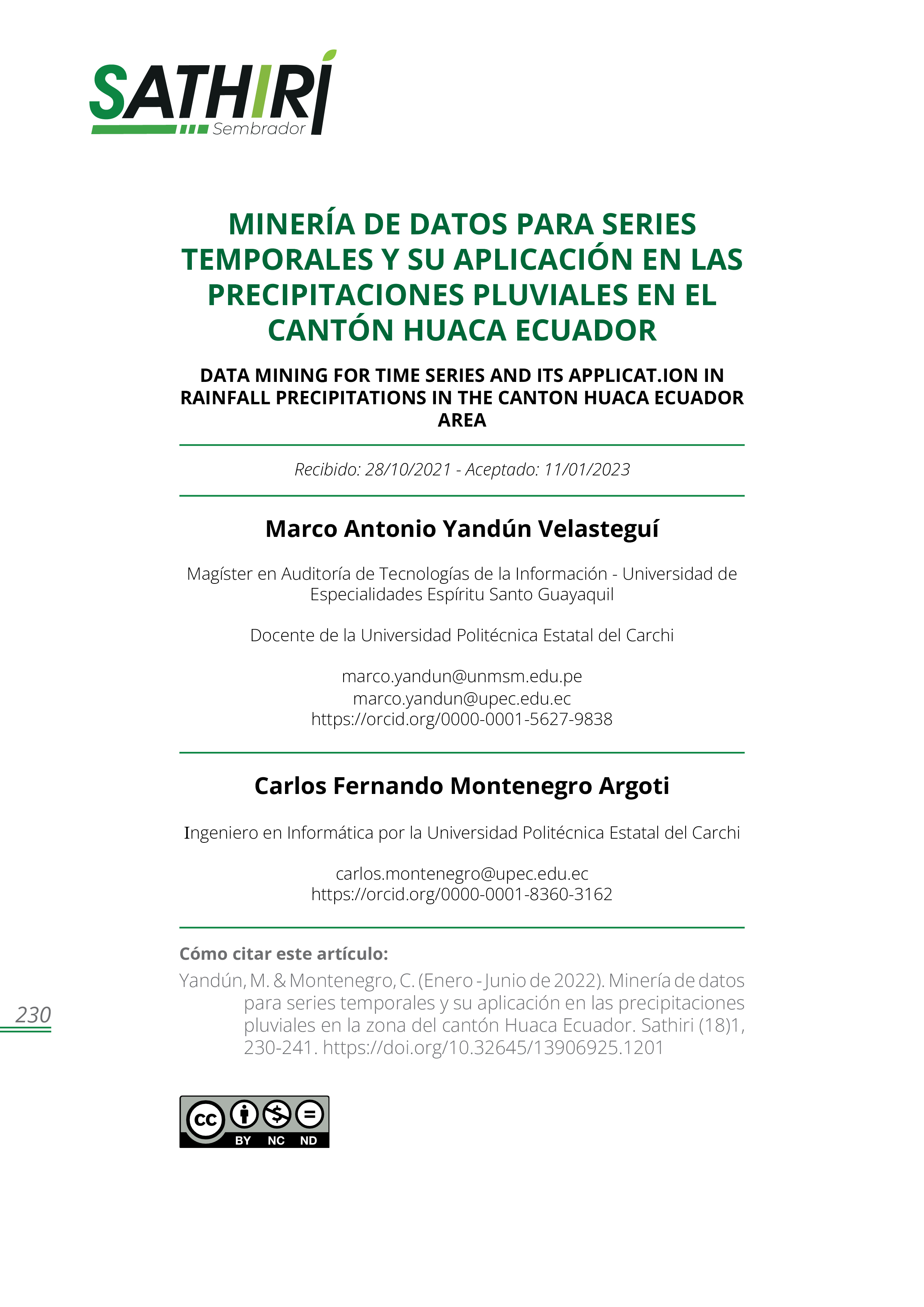Presentamos el número 18, volumen 1, de la revista Sathiri, que mantiene su firme propósito de ser un medio de producción y difusión del conocimiento científico con la comunidad nacional e internacional. En este número se exponen una diversidad de aristas que surgen de problemáticas de la actualidad, buscando no solo informar a los lectores sino también proponerles una reflexión en busca de soluciones.