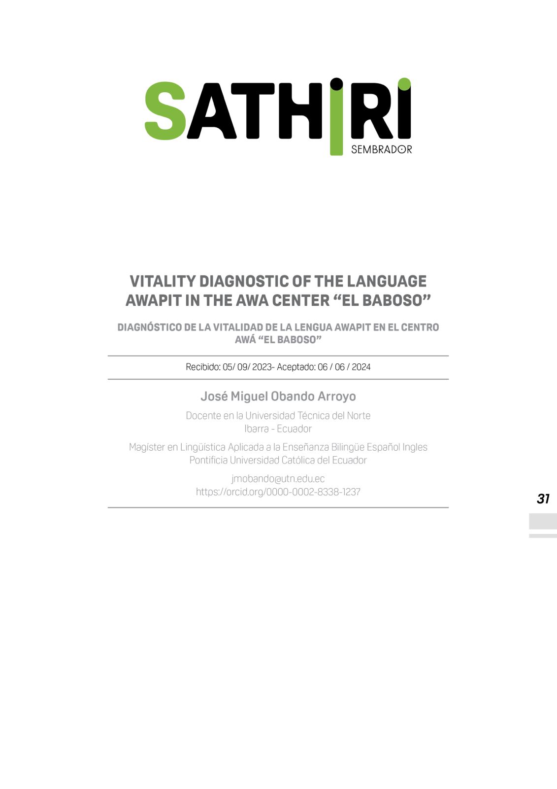 Vol. 19 No. 2 (2024): Sathiri: Sembrador