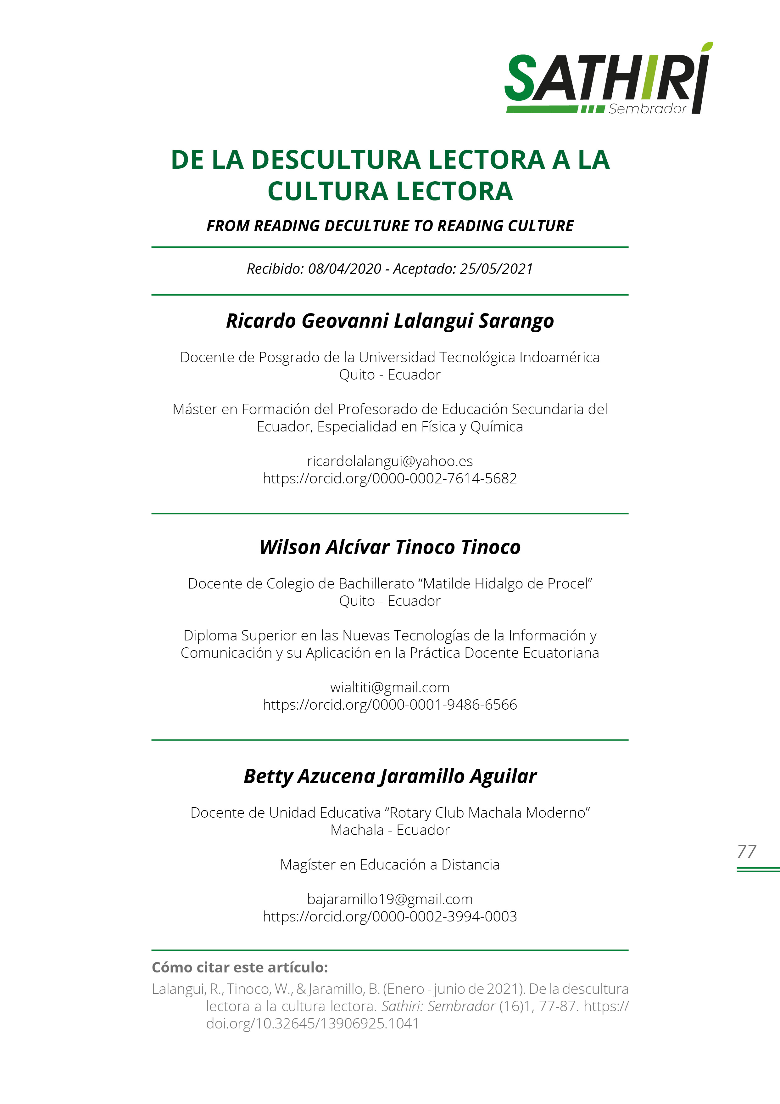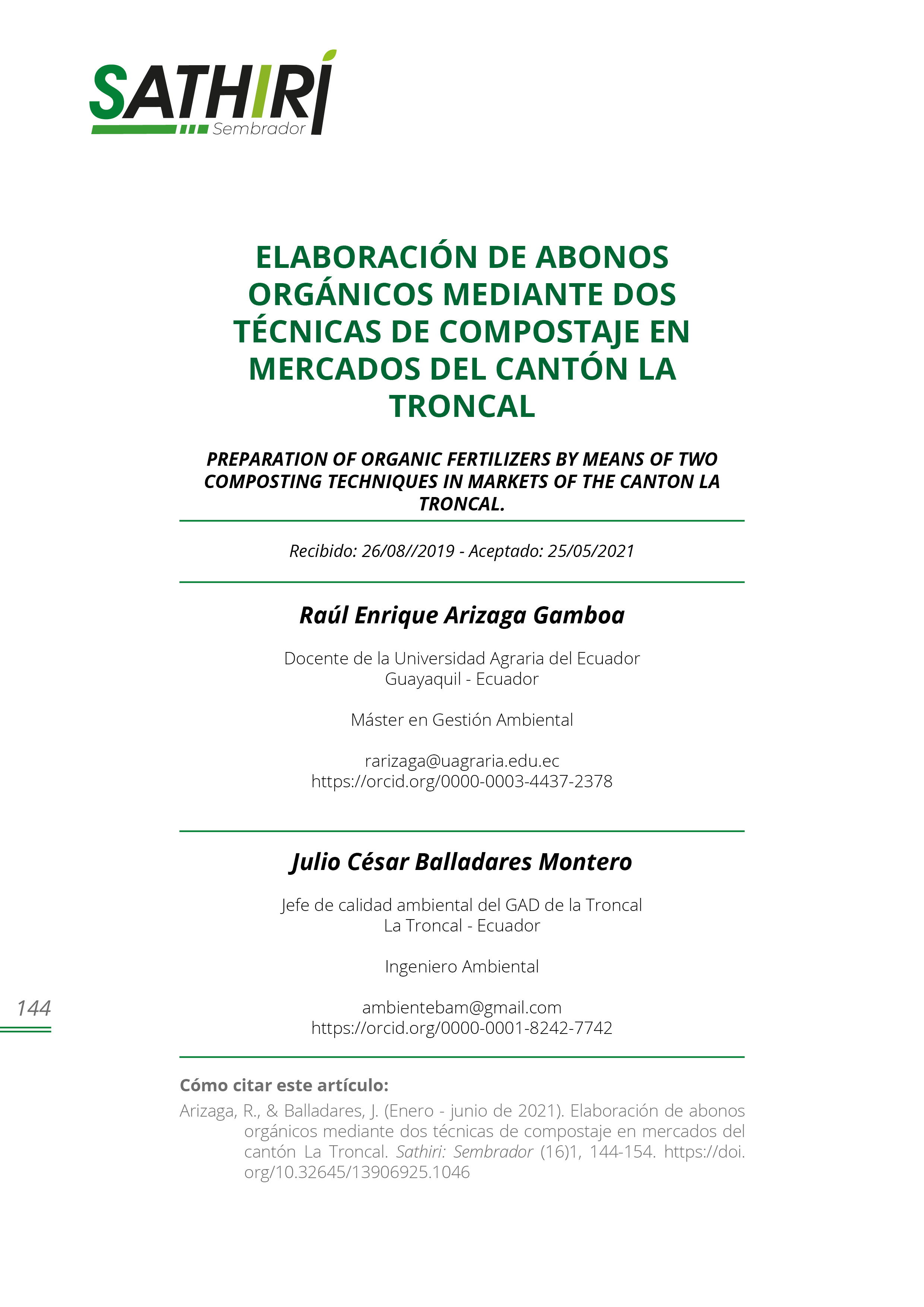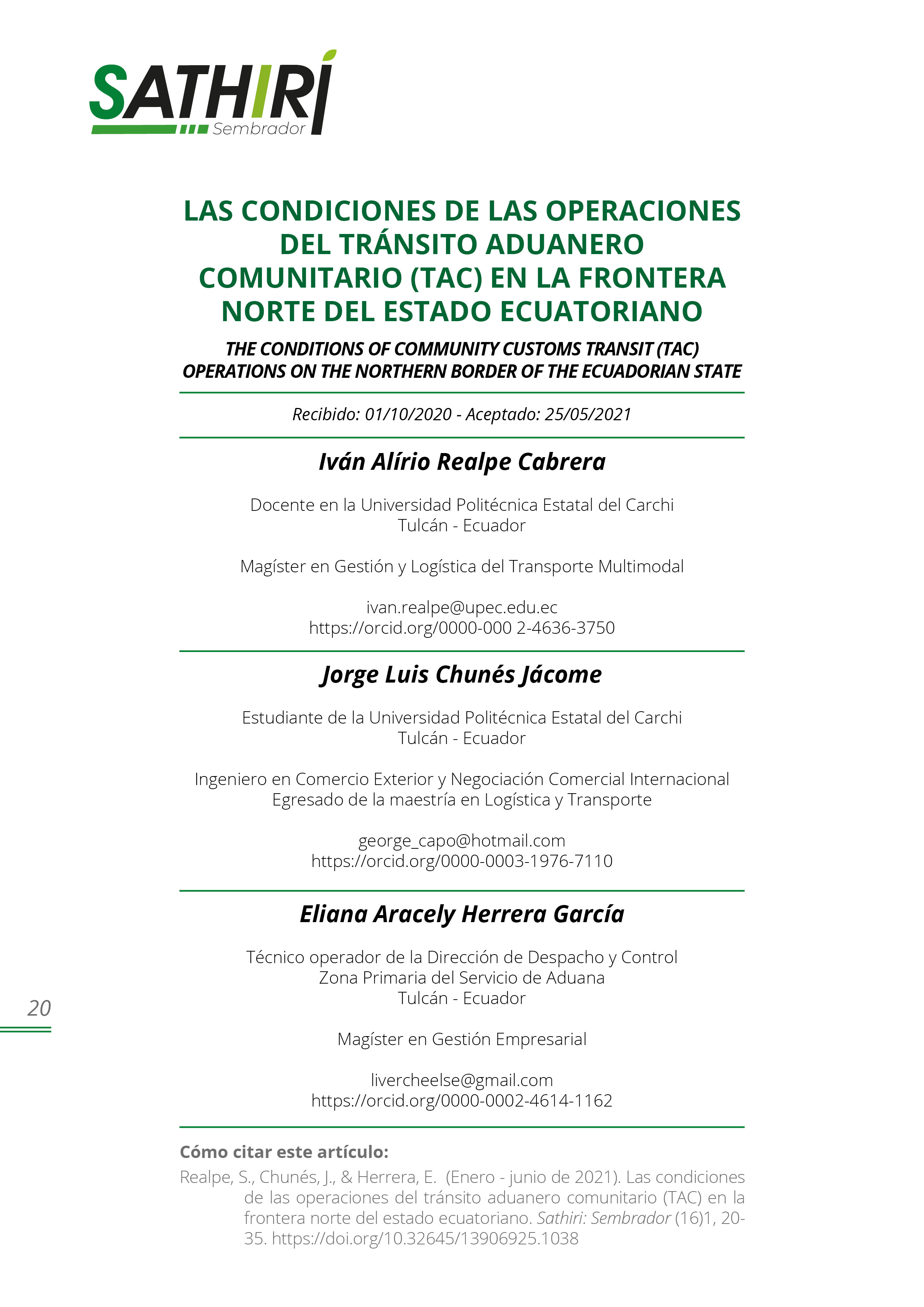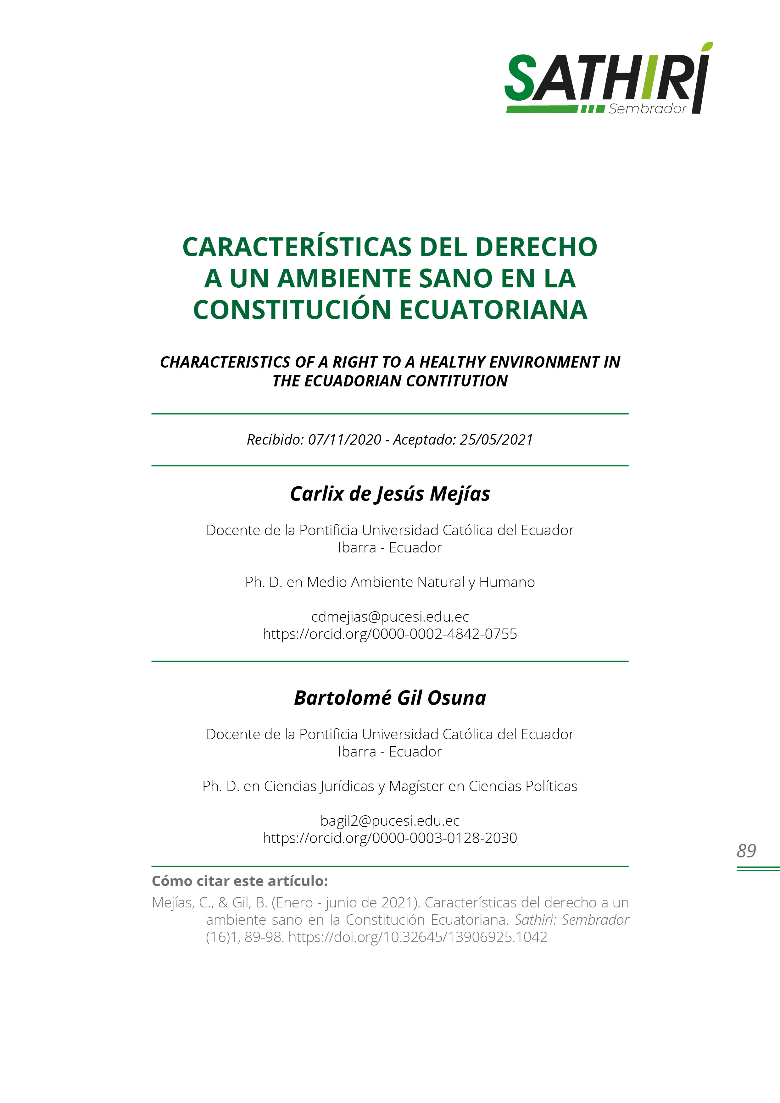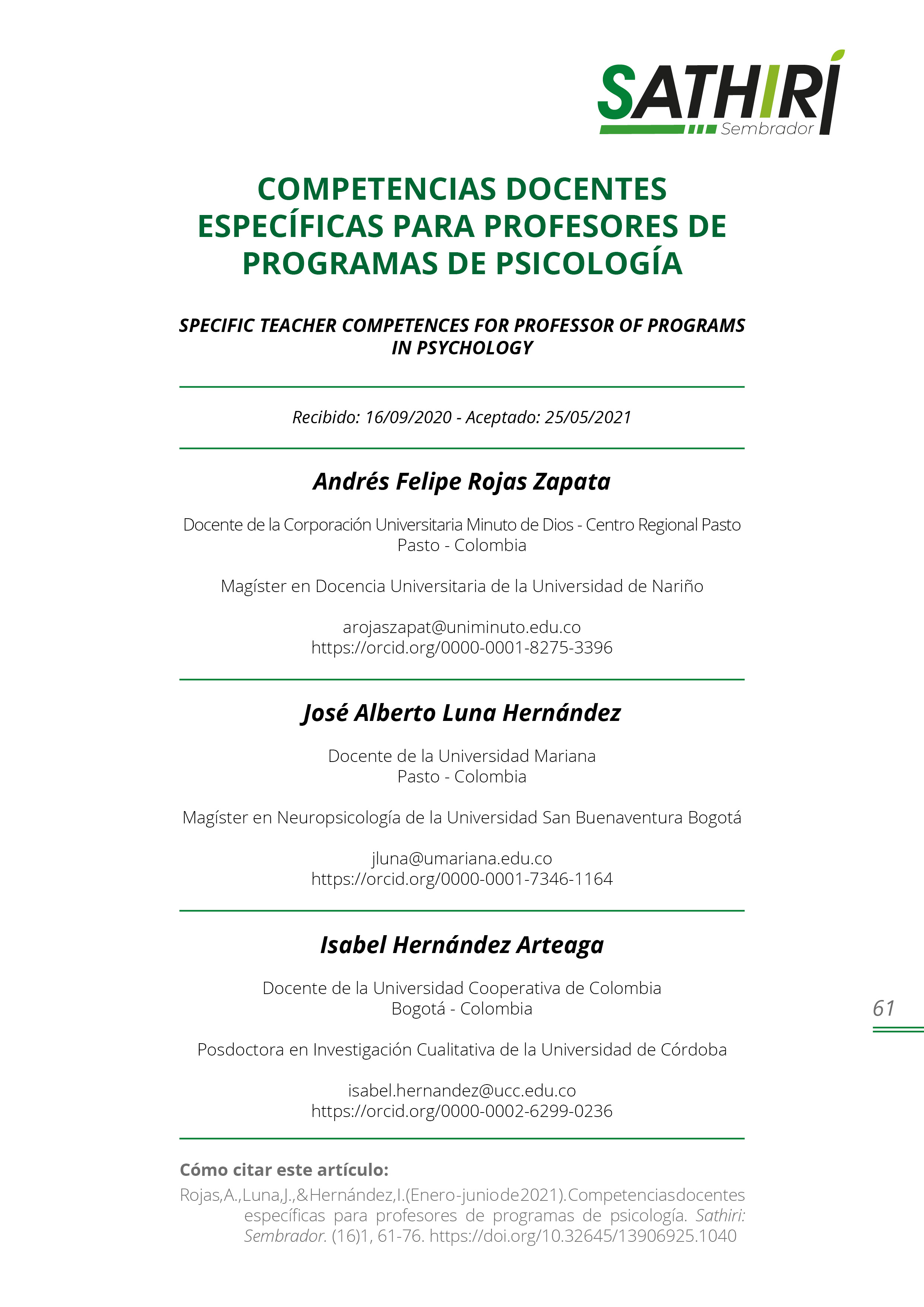 Vol. 16 Núm. 1 (2021): Revista SATHIRI: Sembrador Vol. 16, N° 1 (Enero - Junio)