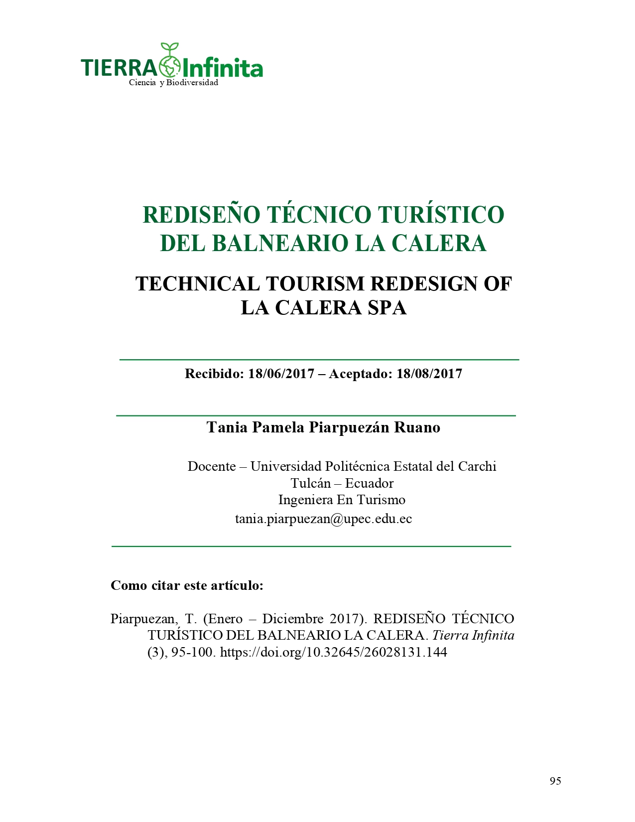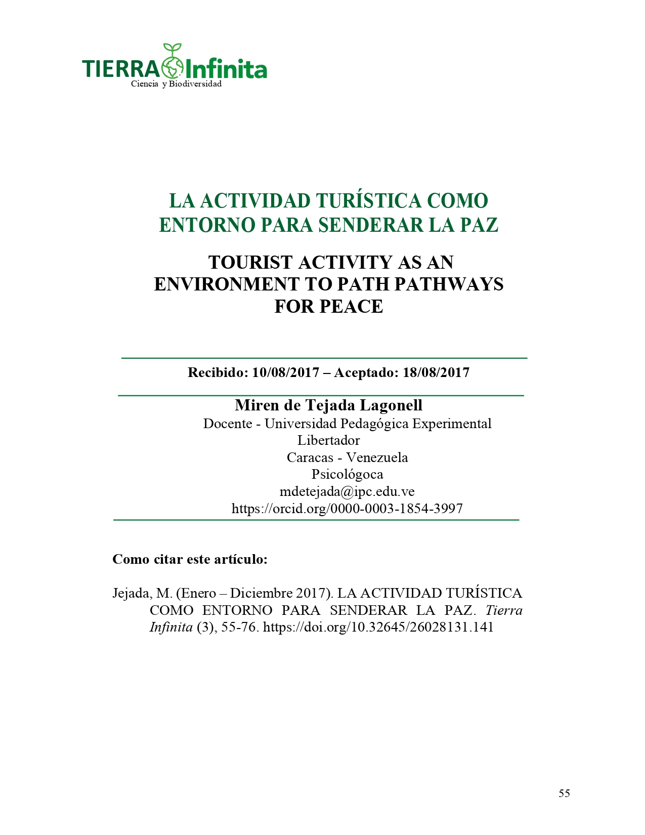 En la actualidad la revista Tierra Infinita a través de la Facultad de Industrias Agropecuarias y Ciencias Ambientales, con sus carreras de Turismo y Ecoturismo, Desarrollo Integral Agropecuario, Alimentos e Informática realiza una contribución relevante al desarrollo profesional-disciplinar, en diferentes campos de acuerdo a las especialidades, aportando al desarrollo, la creatividad, el estudio riguroso de la realidad donde se realizan las investigaciones, proporcionan distintos enfoques relevantes para coadyuvar al desarrollo de la actividad científica, para que los resultados a nivel internacional sobre publicaciones en revistas indexadas vayan incrementándose.