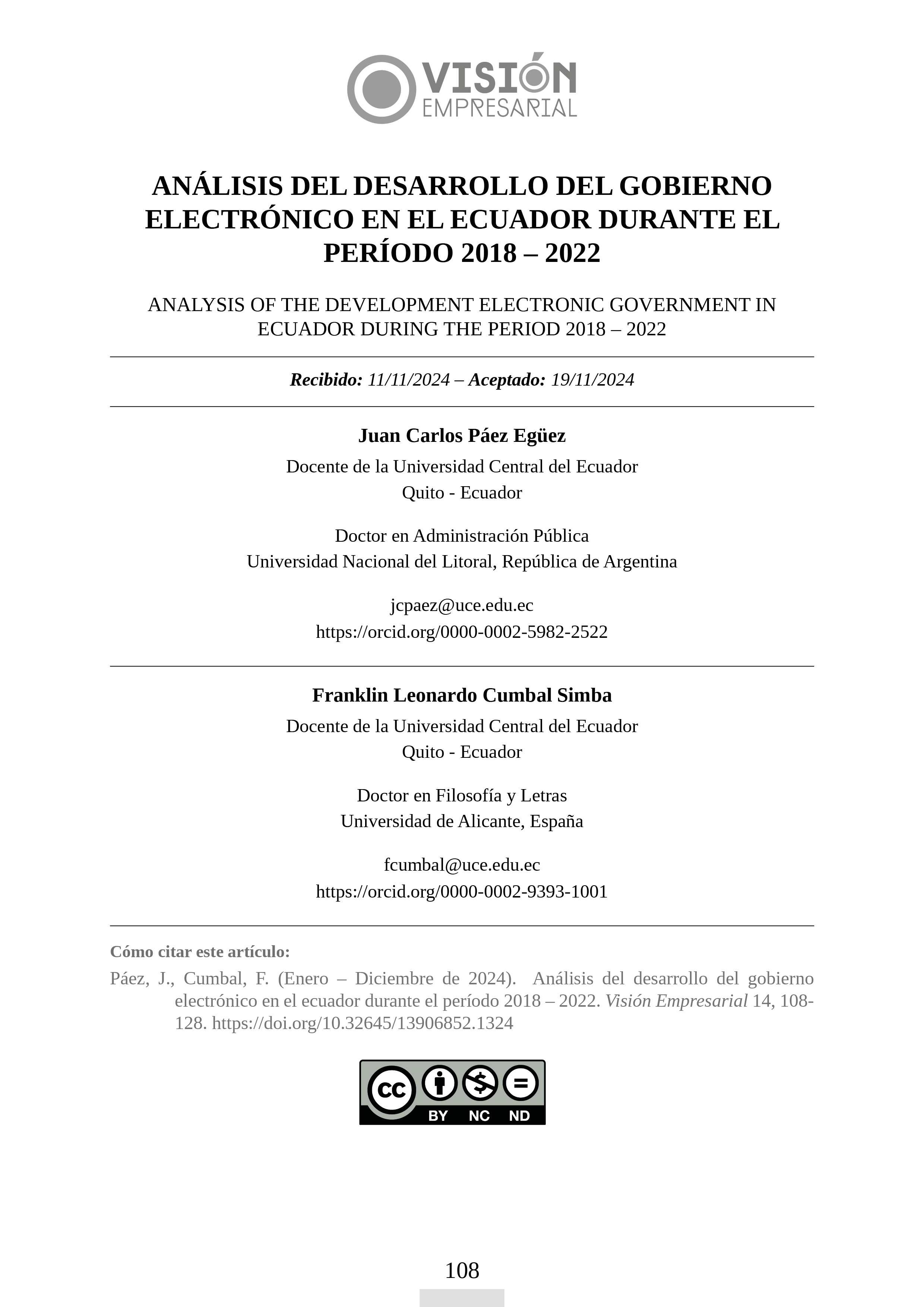 Núm. 14 (2024): Visión Empresarial